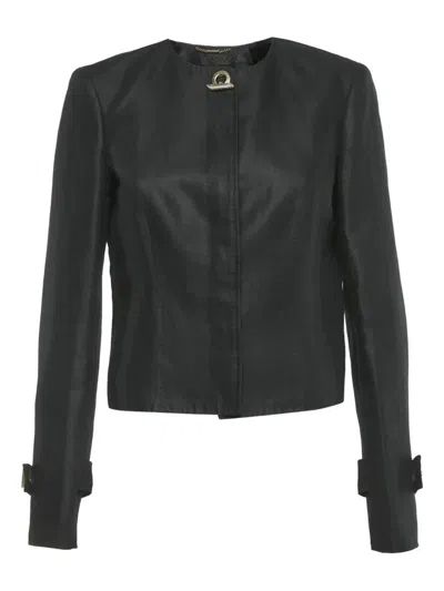 black round neck button cuff straps cotton tailored fit Condition: GOOD. This previously owned and used item is in good condition with minimal signs of use. This may include fading of material or plating and scratches.