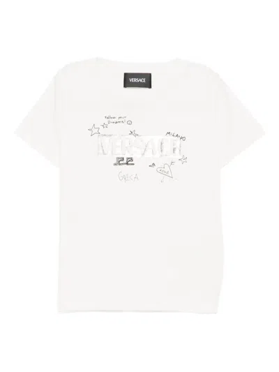 VERSACE Babies' Doodle-logo T-shirt In White