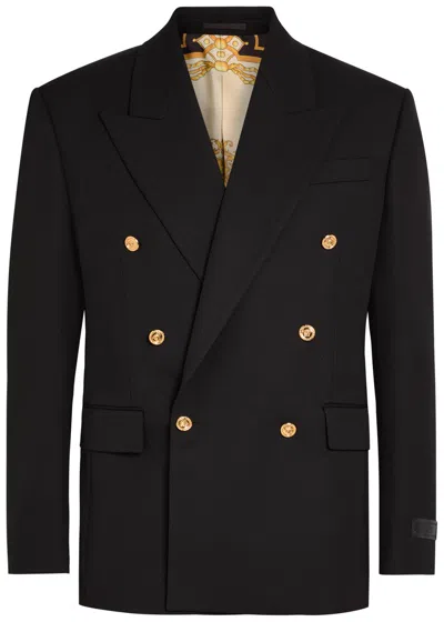 VERSACE Double-breasted Wool Blazer In Black