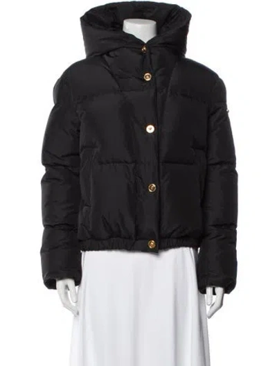 Versace Down Coat Black With Hood Barocco Print Stand Collar Short Slit Pockets & Zip Closure Fit: Coats by Versace typically fit true to size. | Versace Down Coat in Black, Women's US4, IT40 | S