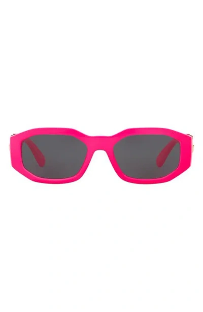 VERSACE Eyewear Rectangular Frame Sunglasses In Fuchsia / Gray