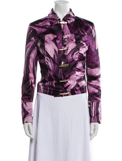 Versace Black & Purple Flap Pockets & Zip Closure Fit: Jackets by Versace typically fit true to size. | Versace Jacket in Black, Women's US6, IT42 | M