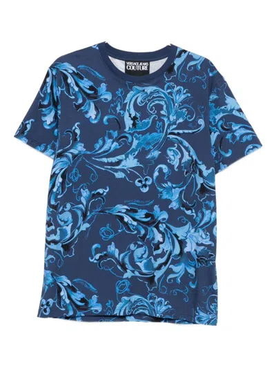 VERSACE JEANS COUTURE Baroque-print T-shirt In Blue