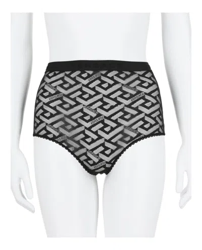VERSACE La Greca-pattern Tulle Briefs In Black