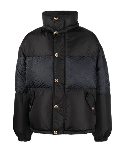 VERSACE La Greca Puffer Jacket In Blue