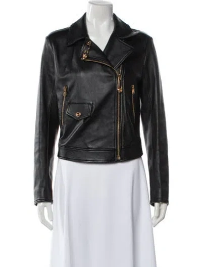Versace Leather Biker Jacket Black Pointed Collar Zip Closure Fit: Jackets by Versace typically fit true to size. | Versace Leather Biker Jacket in Black, Women's US6, IT42 | M