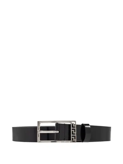 black calf leather rectangular buckle logo detail silver-tone buckle