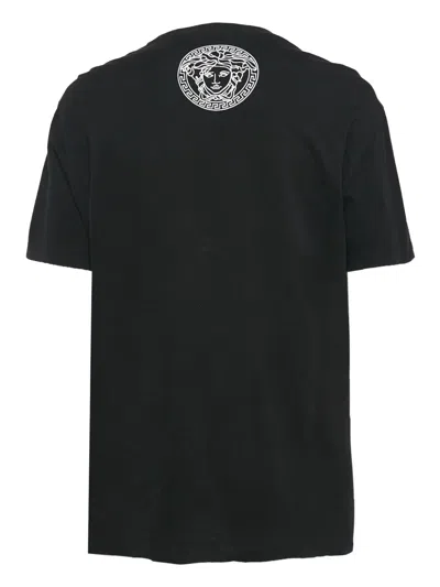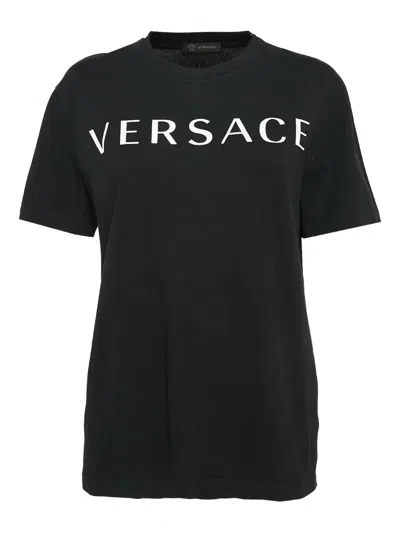 black front logo print Medusa Head motif crew neck short sleeves Condition: GOOD. This previously owned and used item is in good condition with minimal signs of use. This may include fading of material or plating and scratches.