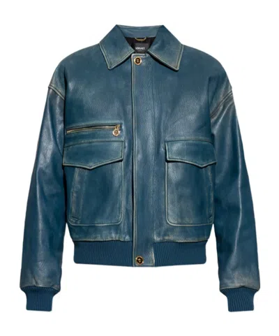 blue ribbed hem chest pocket two front flap pockets zip detail tonal topstitching