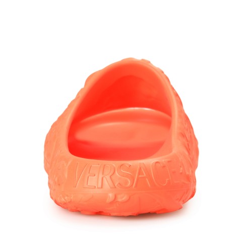 Pre-owned Men's Orange Baroque Medusa Head Embossed Pool Slide Flip Flops Shoes