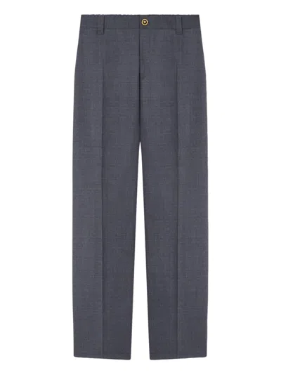 VERSACE Micro-checked Wool Trousers In Blue