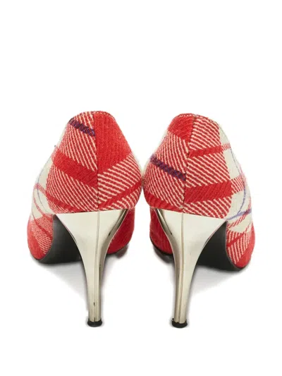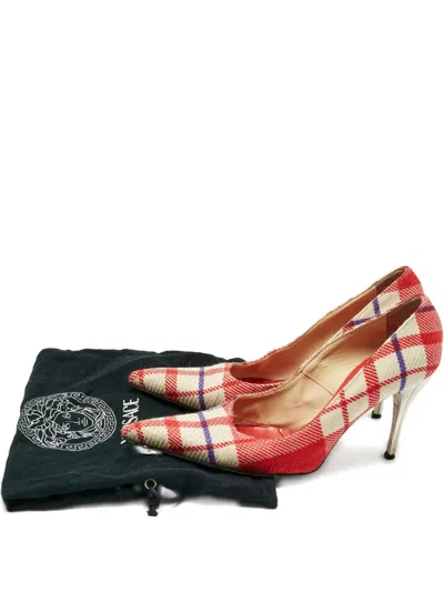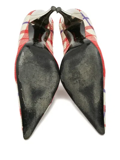 red plaid-check pattern pointed toe slip-on style stiletto heel Condition: GOOD. This previously owned and used item is in good condition with minimal signs of use. This may include fading of material or plating and scratches. This piece comes complete with a protective dust bag.