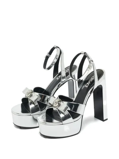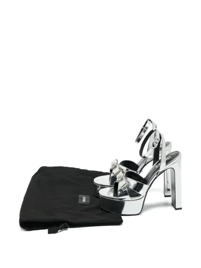 silver-tone foil effect platform sole block heel ankle strap Condition: GOOD. This previously owned and used item is in good condition with minimal signs of use. This may include fading of material or plating and scratches.