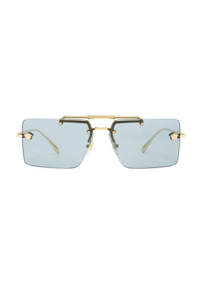 VERSACE Rectangular Sunglasses In Blue & Gold