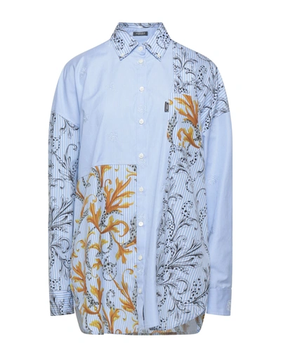plain weave, print, embroidered detailing, stripes, paisley-print, button-down collar, long sleeves, buttoned cuffs, button closing, no pockets , Color: Sky blue , Size: 6