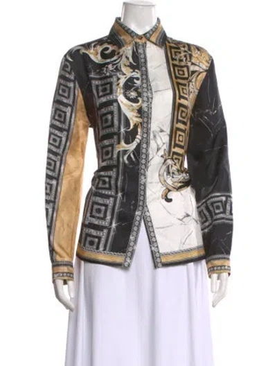 Versace Collection Silk Blouse Black Patterned Long Sleeve with Collar Fit: Tops by Versace typically fit true to size. | Versace Collection Silk Patterned Blouse in Black, Women's US8, IT44 | M