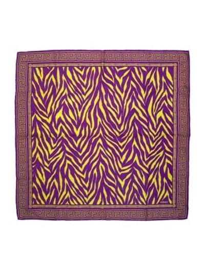 Versace Silk Scarf Purple & Yellow Printed Featuring Hand-Rolled Edges | Versace Silk Printed Scarf in Purple/Yellow