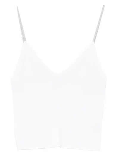 white silver straps ribbed fabric spaghetti straps Condition: GOOD. This previously owned and used item is in good condition with minimal signs of use. This may include fading of material or plating and scratches.