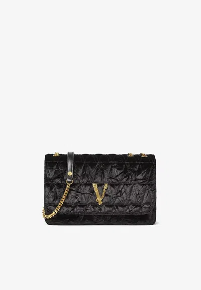 VERSACE Virtus Velvet Shoulder Bag In Black