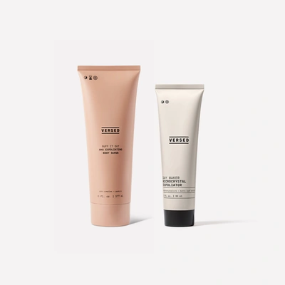 Cruelty-Free | Dermatologist-Tested | Sensitive Skin-ApprovedThis 100% plastic microbead-free exfoliating duo visibly transforms skin from flaky and lackluster to soft and glowing. The creamy body scrub contains AHAs (lactic and glycolic acid) that work hand-in-hand with finely ground pumice to banish bumps, target hyperpigmentation and polish away dry patches, leaving skin touchably soft and radiant. The exfoliating facial cleanser uses plant-based microcrystals to gently slough away dead skin and detox pores, leaving your complexion smooth, refined, and even-toned.Buff It Out AHA Exfoliating Body Scrub | 6 fl. oz.; Day Maker Microcrystal Exfoliator | 3 fl. oz.;