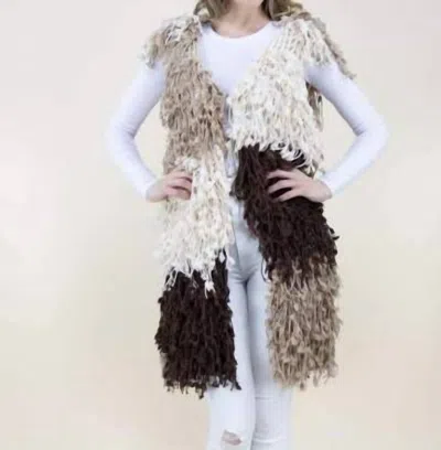 VERY MODA Color Block Fringe Vest In Khaki In Multi