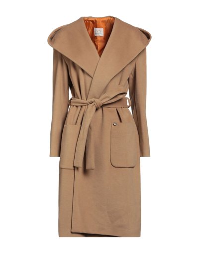 VERYSIMPLE Coats. velour, belt, brand logo, solid color, hooded collar, single-breasted, long sleeves, fully lined, multipockets, stretch. 75% Polyester, 20% Viscose, 5% Elastane