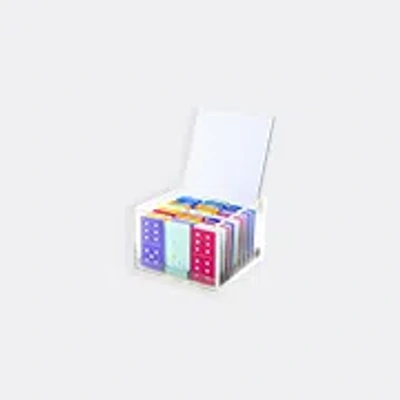 Vesta gives timeless board games a contemporary twist by crafting them entirely from acrylic crystal. This domino set, which comes in an elegant printed case crafted from the same material, includes game tiles in five colors: yellow, fuchsia, blue, tiffany, and violet. The box's lid is printed with a playful graphic stripe in multicolor. Creating joy and connection, Vesta's domino game set is a bright, minimalist interior accent for the home. Collect the stylish series of games by the fun-loving Italian brand for evenings of endless entertainment.