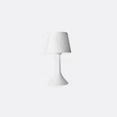A cool reimagining of a classic silhouette, this portable table lamp by Vesta manifests in graceful lines and a pure, all-white finish. The fine ribbing of the shade is subtly reflected in the flowing conical base in a clean design, masterfully crafted from resin. The wireless 'Duse' lamp in white blends into any space and can be easily transported from room to room for soft, glare-free illumination.