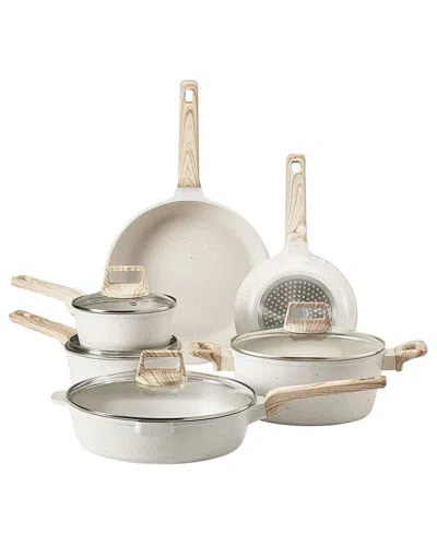 Color/Finish: White Design Details: Details: 17-Piece Cookware Set: A Versatile Pots And Pans Set That Includes: 6In Sauce Pan With Lid, 7In Sauce Pan With Lid, 8In Frying Pan, 11In Frying Pan, 11In Sauté Pan With Lid, 9In Stockpot With Lid, 2 10X10in Pan Protectors, 3 14X14in Pan Protectors, Silicone Spoon, Silicone Shovel Premium Material: Made With A Maifan Stone Non-Stick Coating, This Cookware Set Ensures Easy Food Release And Effortless Cleaning. The Interior Withstands Temperatures Up To 380°C, Making It Reliable For Daily Use. The Cookware Does Not Include Lead, Cadmium, And Pfoa. Cook With Less Oil For A Healthier Meal Experience Compatible With All Stovetops: Crafted From 2.5Mm Thick Aluminum, The Rv Cookware Base Heats Quickly And Evenly. The High-Magnetic Conductive Bottom Makes It Suitable For All Stovetops, Including Gas, Electric, And Induction Multi-Purpose Cookware: Versatile And Functional, This Space Saving Pots Set Seamlessly Transitions From Stovetop To Grill, And Tabletop. Its Elegant And Modern Design Enhances The Presentation Of Your Dining Experience User-Friendly Design: Featuring Heat-Resistant Silicone Handles, This Kitchen Cooking Set Provides A Comfortable Grip While Preventing Burns. The Transparent Glass Lids Allow For Easy Monitoring Of Your Food While Cooking. Effortless To Clean, It Wipes Down In Seconds, Making Kitchen Maintenance Simple Measures 16.74In X 15.36In X 9.06In Imported