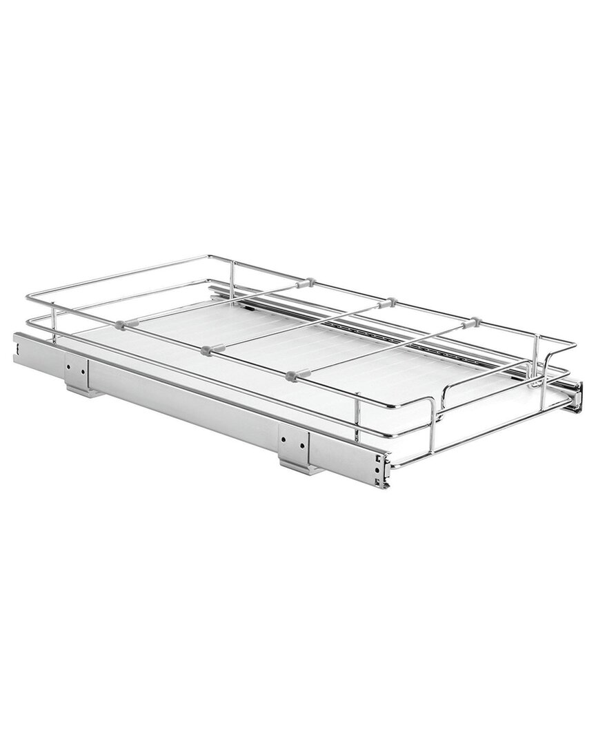 Color/Finish: Silver Design Details: Convenient And Practical Storage Solution: The Pull Out Cabinet Shelf Can Create Larger Storage Space In A Small Cabinet; You Can Use It In Any Cabinet. You Can Place Pots And Pans, Seasoning Jars, Food Jars, Cleaning Supplies, Spice Racks, And Other Items, Significantly Saving Your Storage Space. 2. Smooth And Quiet Sliding: Using An Industrial-Grade Ball Sliding System, Even Under The Weight Of Heavy Portable Equipment (Such As Kitchen Mixers, Pots And Pans, And Other Kitchen Utensils), This Wire Basket Slide Shelf Can Slide Smoothly Without Unpleasant Noise. 3. Built To Last: The Cabinet Pull Out Shelve Is Made Of High-Quality Steel, Which Is Challenging To Rust And Deform. It Is Also Durable Enough To Handle Up To 28.6 Lbs And Can Hold Heavy Items Easily. The Chrome-Plated Surface Makes The Shelve More Attractive, Preventing Scratches On The Surface. The Tray Is Detachable, Easy To Clean, And Can Give You A Tidy Home. 4. Easy Installation: The Under Sink Slide Out Cabinet Shelve Only Takes 4 Easy Steps To Complete The Installation, Greatly Saving Time. It Can Be Installed On The Left Or Right Side, Which Is Suitable For Cabinets And Effectively Avoids The Water Pipe. Once Installed At The Bottom Of The Cabinet, The Organizer Can Be Pulled Out Smoothly, Which Is Very Convenient And Practical. 5. Satisfaction Service: We Have A Perfect Service System And Treat Every Buyer In Good Faith. If You Need Help With Missing Accessories Or Instructions After Receiving The Package Or Support During Installation, Don't Hesitate To Contact Us, And We Will Try The Best To Serve You. So Rest Assured To Buy The Products Measures 22.05In X 11.62In X 3.15In Imported