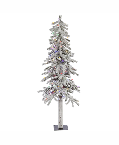 VICKERMAN 5 Ft Flocked Alpine Artificial Christmas Tree With 150 Multi Lights