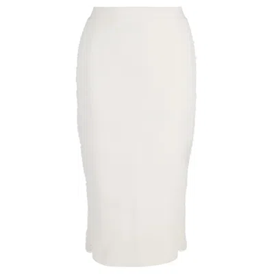 VICTORIA BECKHAM Knitted Pencil Midi Skirt In White Cotton