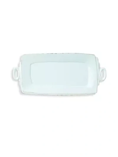 A handled rectangular shaped platter on stoneware 16"W x 8.75"D Italian stoneware Hand wash Handcrafted in Italy. Gifts - Serveware > Saks Fifth Avenue > Barneys. Vietri. Color: Aqua.