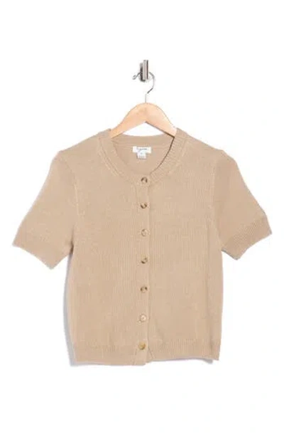 This short‑sleeve cardigan is made from a soft cotton blend that layers easily while offering lightweight comfort and a polished look. 19" length (size Small) Front button closure Crewneck Short sleeves 55% cotton, 45% acrylic Machine wash, dry flat Imported