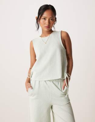 Textured Stripes Sleeveless Tie Sides Top