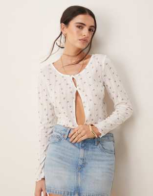 Sweaters & Cardigans by Vila Floral design Round neck Button placket Long sleeves Front slit Regular fit