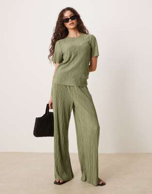 VILA Wide Leg Plisse Pants In Green