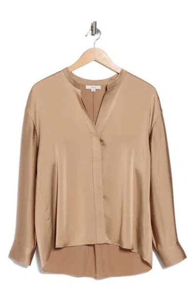 VINCE Long Sleeve Satin Button-up Shirt In Brown