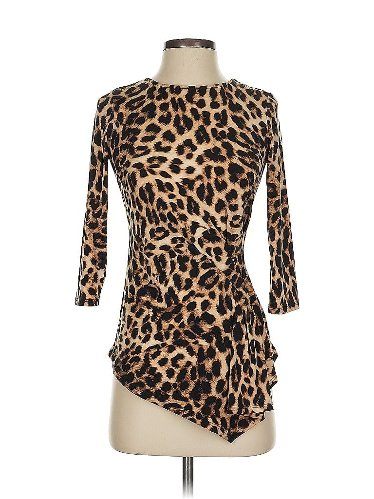 Pre-owned 3/4 Sleeve Top Brown One Shoulder Neckline Tops