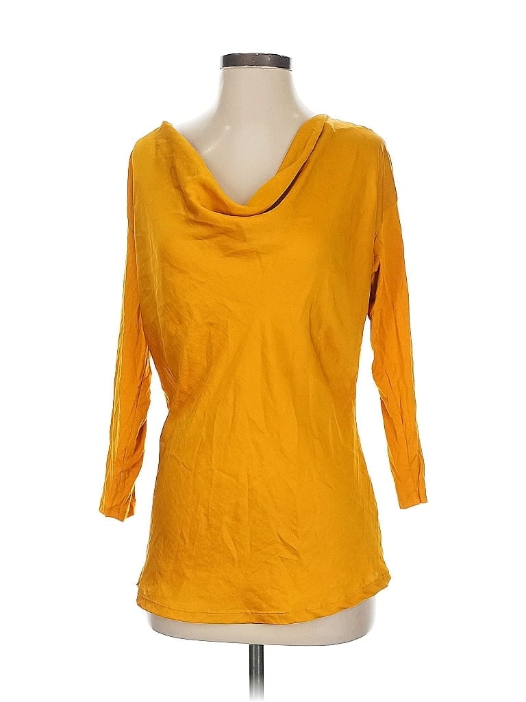 Pre-owned 3/4 Sleeve Top Yellow Cowl Neck Tops