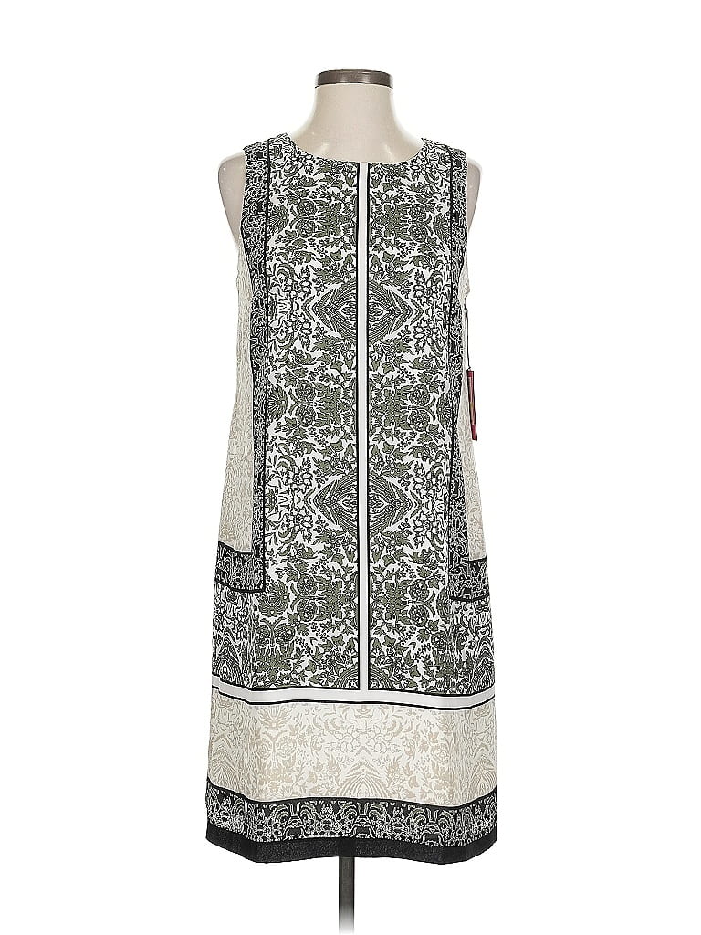 Vince Camuto Casual Dress, Size: 4. Item Details: Gray, Paisley Pattern, Shift, Boatneck, Knee Length, Sleeveless, Print, Women's Dresses