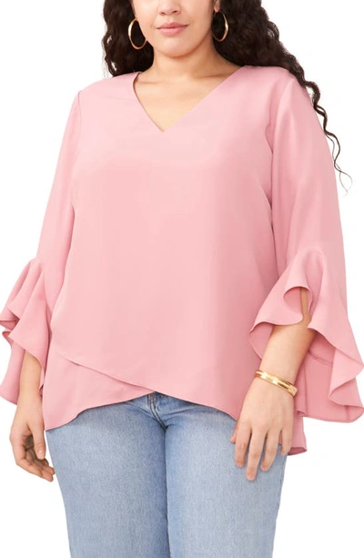 VINCE CAMUTO Flutter Sleeve Crossover Georgette Tunic Top In Pink Shadow