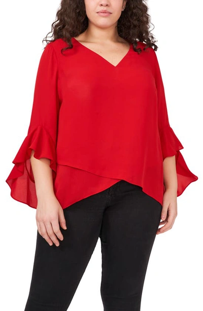 VINCE CAMUTO Flutter Sleeve Crossover Georgette Tunic Top In Red