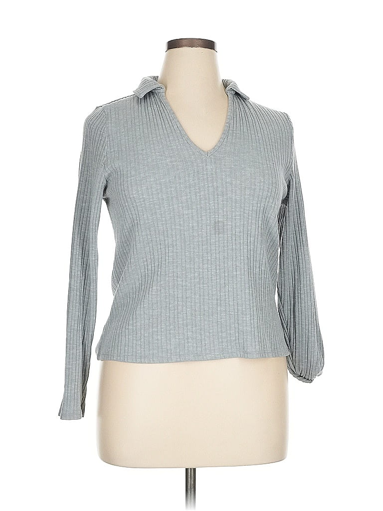 Pre-owned Long Sleeve Top Gray Turtleneck Tops