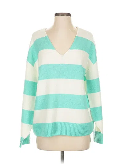 Vince Camuto Pullover Sweater, Size: Small. Item Details: Teal, Stripes Pattern, V Neck, Long Sleeve, Women's Tops, Acrylic/Polyester/Spandex