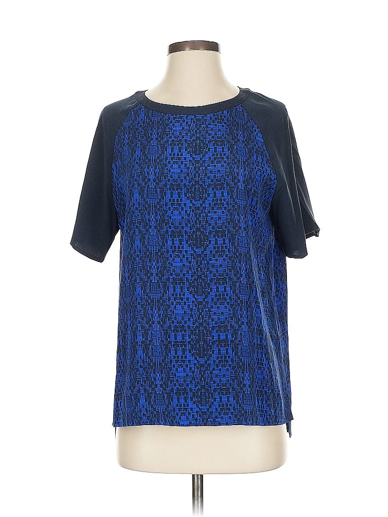 Vince. Short Sleeve Top, Size: X-Small. Item Details: Blue, Square Neckline, Pattern, Women's Tops, 100% Silk
