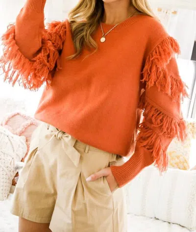 VINE & LOVE The Right One Tasseled Sweater In Rust In Multi