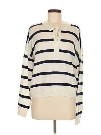 Vineyard Vines Pullover Sweater, Size: Medium. Item Details: Ivory, Stripes Pattern, Collared Neckline, Long Sleeve, Women's Tops, Linen/Cashmere