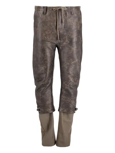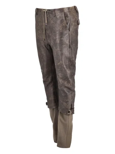 dark green cotton/leather drawstring fastening belt loops layered details two side slit pockets two rear flap pockets tapered leg Condition: GOOD. This previously owned and used item is in good condition with minimal signs of use. This may include fading of material or plating and scratches.