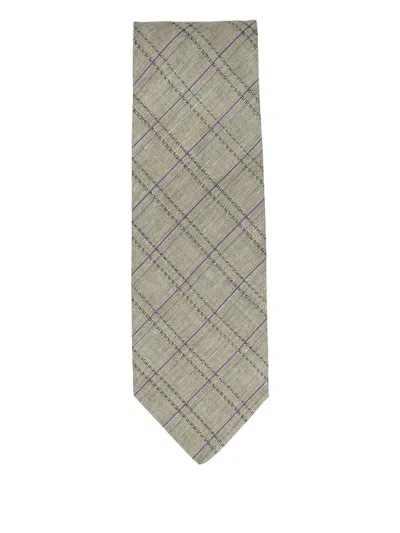 Pre-owned Check-pattern Tie In Gray